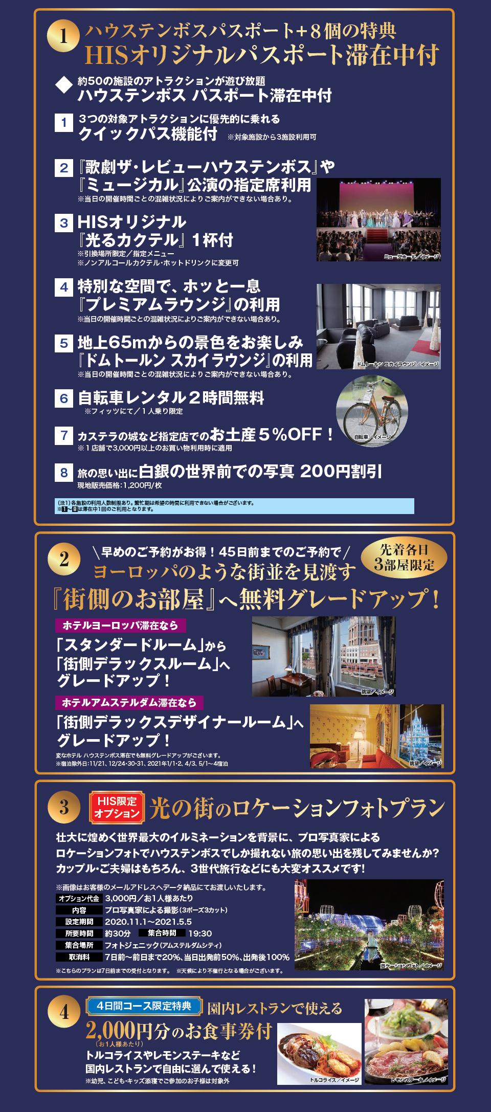 His 優先入場などが付いたhisオリジナルパスポート付で光の王国を大満喫 花と音楽に溢れた場内最上級ホテル ホテルヨーロッパ に滞在 ときめきの光の街 ハウステンボス2日間 近畿発